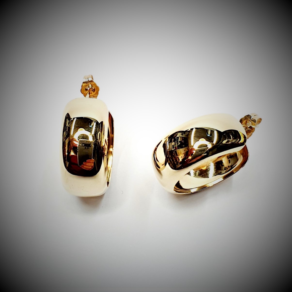 A lovely retro style 9ct yellow gold wide hoop earrings with friction butterfly ear fittings.