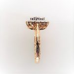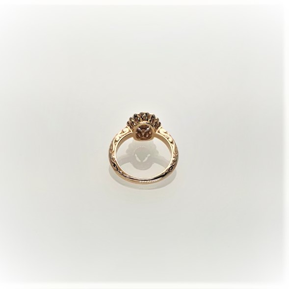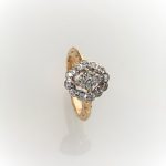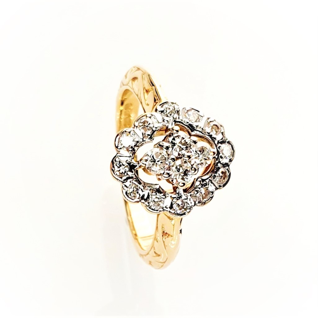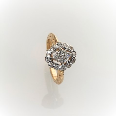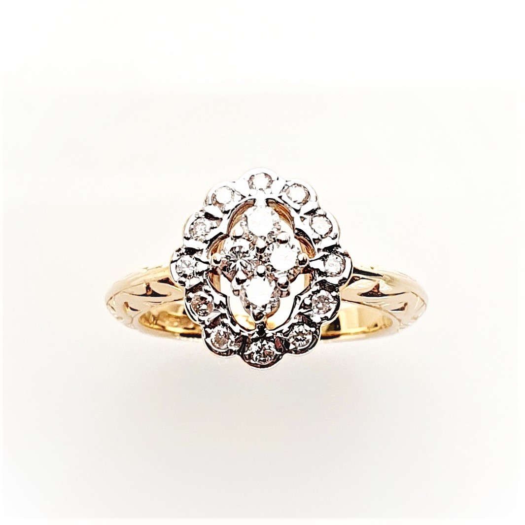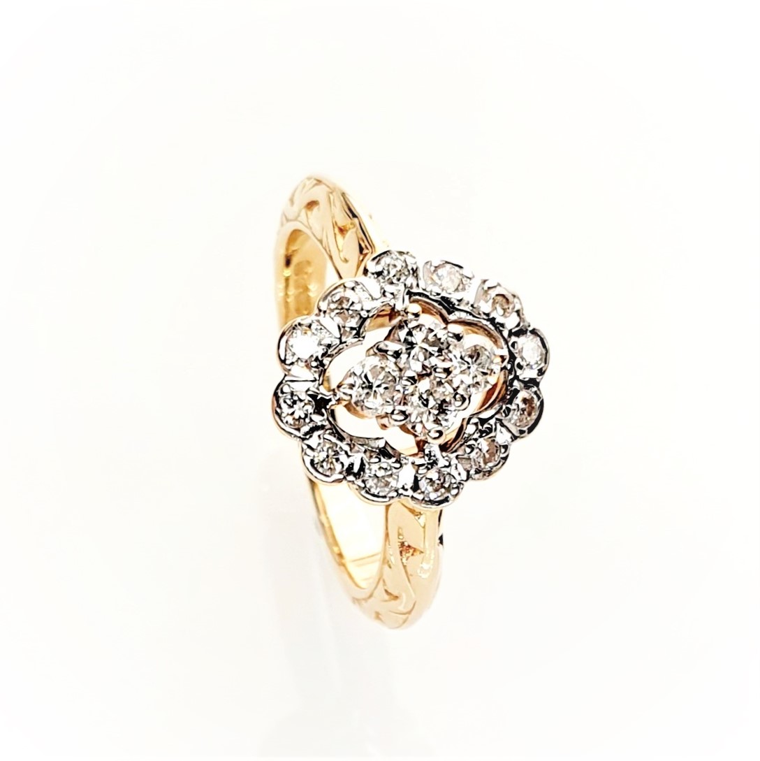 A blast from the past, this gorgeous Victorian style diamond halo cluster ring has an ornately carved design to the sides, it is in excellent condition, made in Birmingham in 1985, it looks like it was made yesterday no signs of wear and tear.