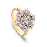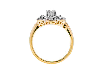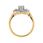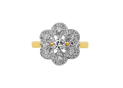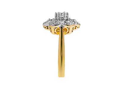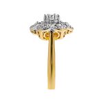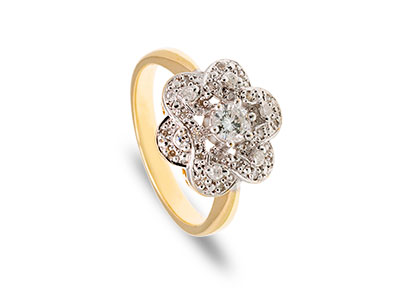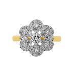 A gorgeous 14ct yellow & white gold ring, encrusted with round white diamonds in an unusual interwoven flower style setting.