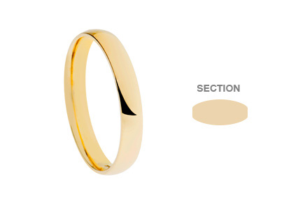 Crafted in 18ct yellow gold, this 3mm band of gold is beautiful in its simplicity. A plain highly polished wedding ring that allows your engagement ring to take centre stage.