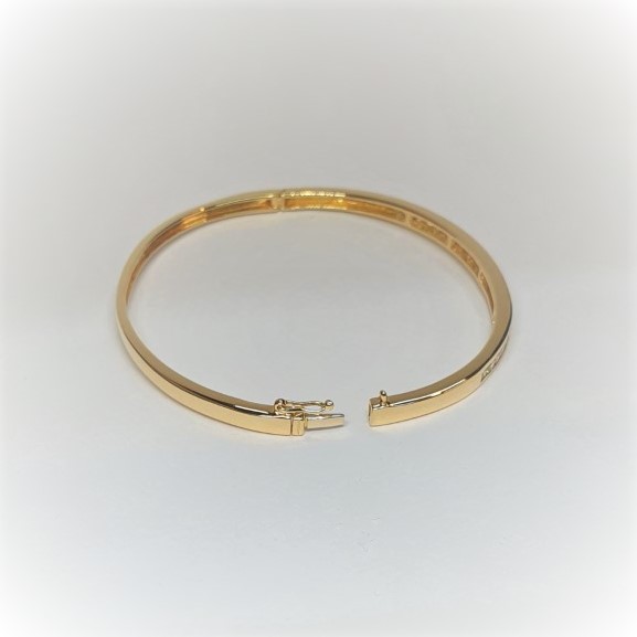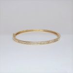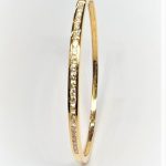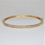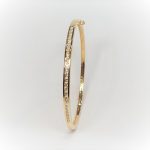 Whether it’s this gorgeous 18ct Gold Diamond line Bangle you choose or one of our heavy gold stacking bangles, a plain design, a complicated patterned bangle or adding some weight with several plain bangles, bangles, in general, are in vogue and bang on-trend.