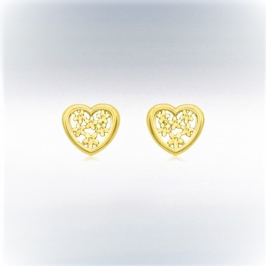 Petite and feminine 18ct Yellow Gold Heart Earrings with a delicate cut‑out flower centre. Measuring 8mm x 7mm, these petite yellow gold studs arrive in a luxury presentation box — perfect for everyday elegance or a thoughtful gift.