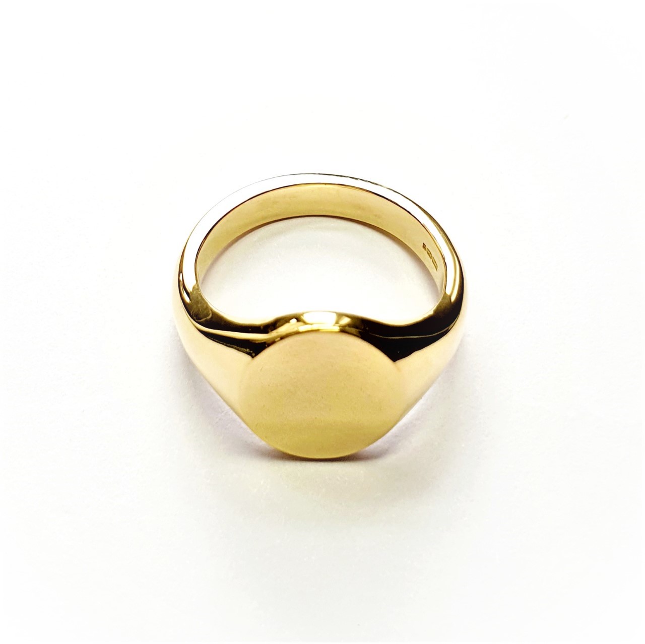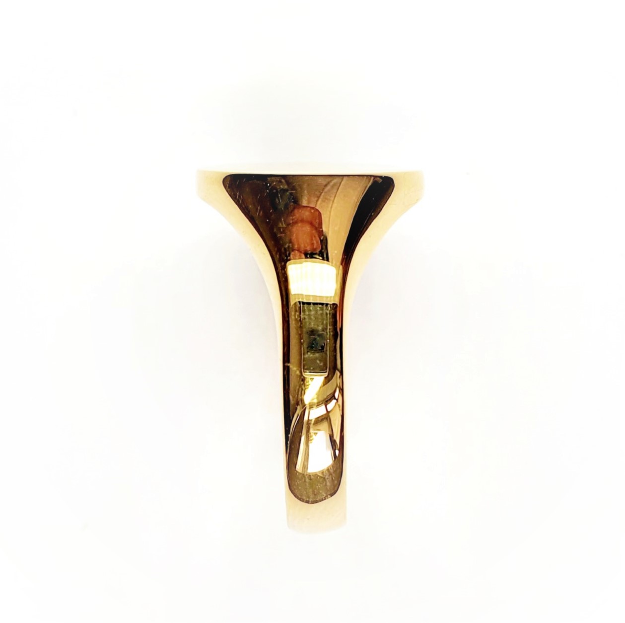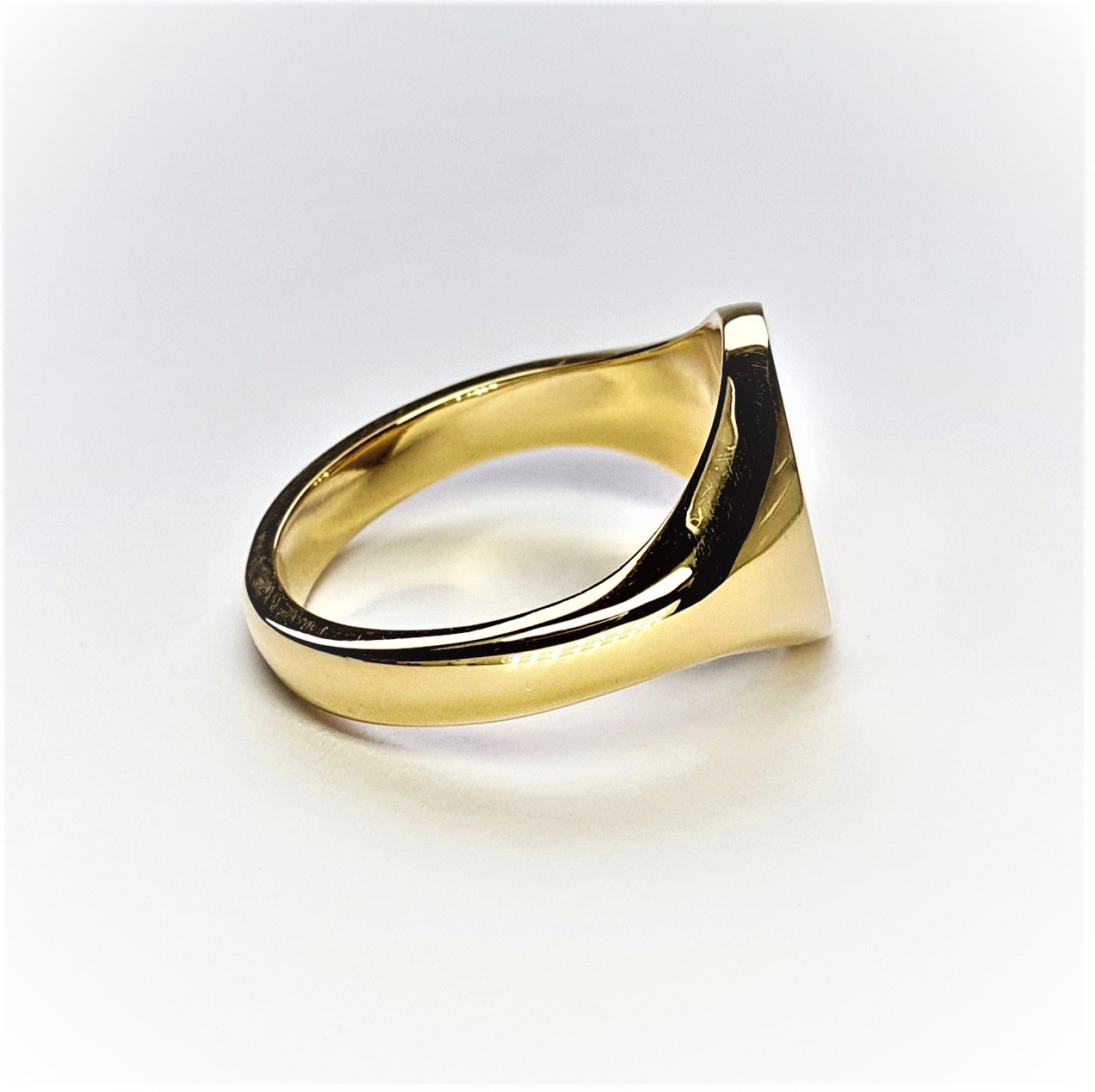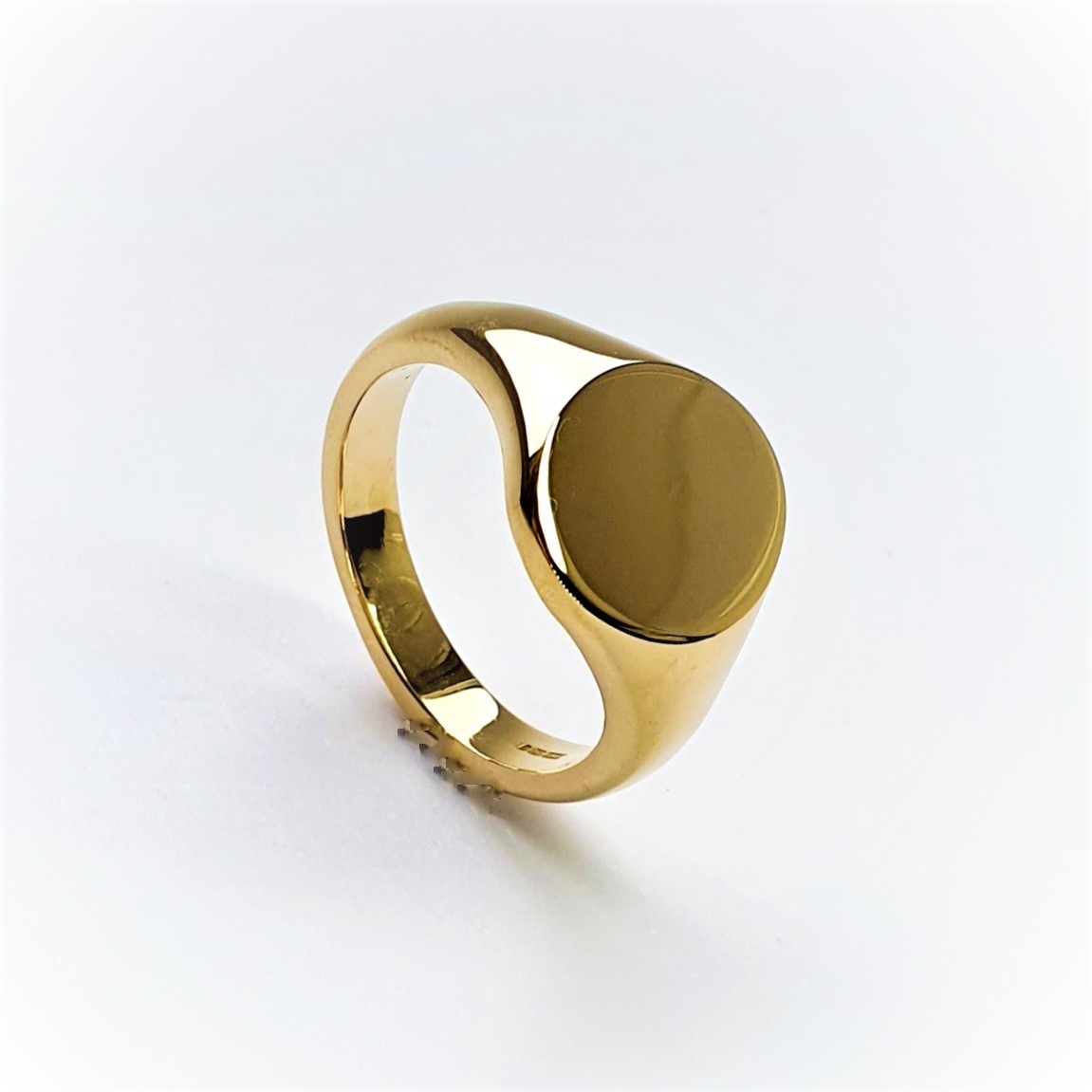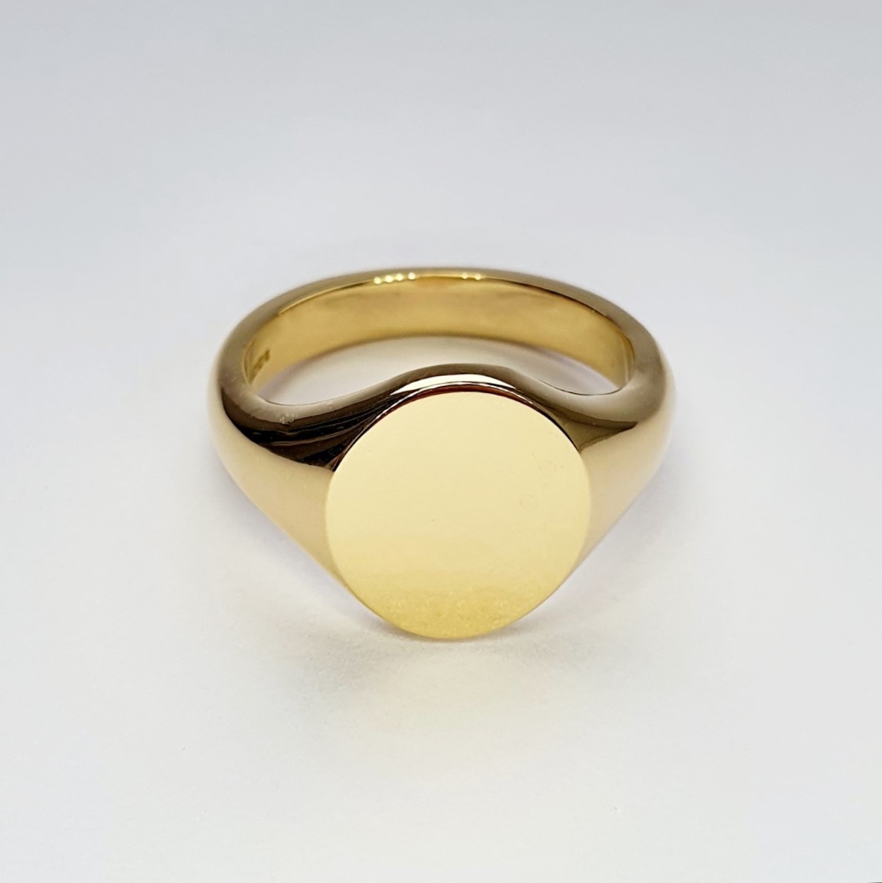 14mm x 12mm oval solid 18ct yellow gold Oxford-style signet ring.