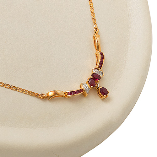 City of London Jewellers present’s the Redbridge 18ct gold ruby and diamond necklace.