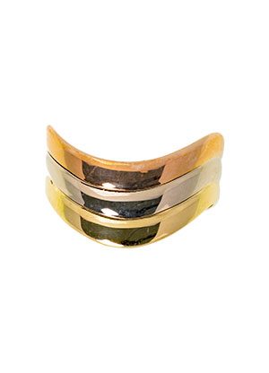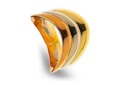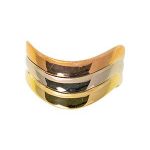 A gorgeous wave of three 18ct colours of gold, in the wishbone style.