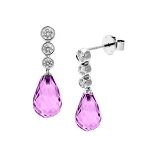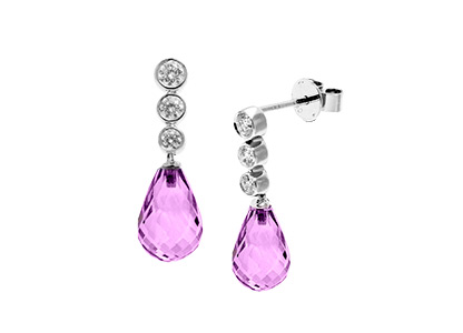 The linear placement of these gorgeous graduating round brilliant cut diamonds, leading to the unusual briolette cut rich purple amethyst, make these ravishing 18 carat white gold drop earrings something very special, creating an original statement of unconventional style.