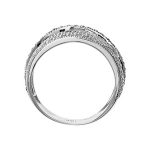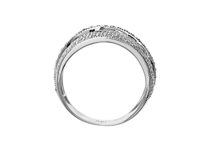 This unusual abstract design band ring measures 14mm to the front, tapering to 7.3mm at the back.
