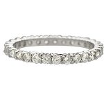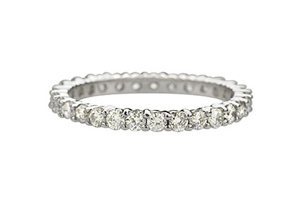 A timeless classic, this feminine 18ct white gold ring is claw set with a single row of beautiful round brilliant cut diamonds, which have been specially chosen for their exceptional sparkle and fire. Gorgeous with a plain wedding band or simply on its own.