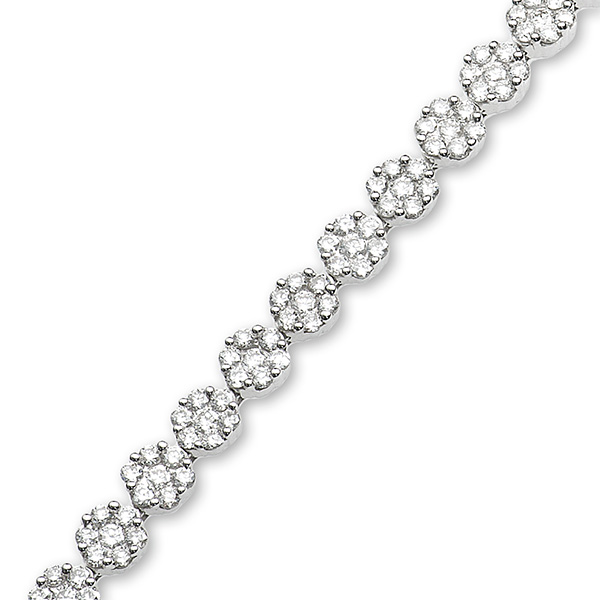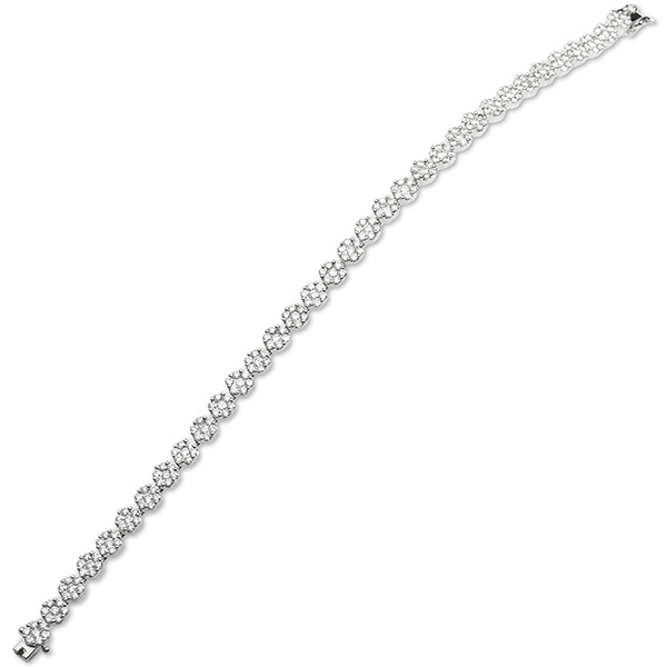 Made up of thirty-four round cluster sections, set with seven round brilliant cut diamonds in each cluster, brought together with a concealed moving hinge between each section and fitted with a concealed box clasp, allowing a continuous smooth flowing movement. Also fitted with two figure of eight safety clasps for extra safety.
