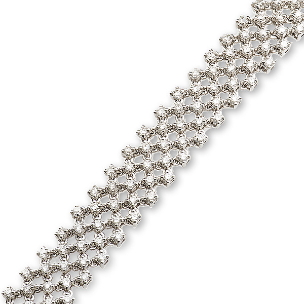 This sophisticated elegant bracelet is crafted to the highest standard. Individually claw set with two hundred and twenty-one brilliant cut diamonds, brought together with a flowing 18ct white gold mesh design, allowing movement between each section, an outstanding bracelet. Complete your favourite evening dresses with this glamorous bracelet that’s guaranteed to make you feel like royalty.