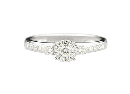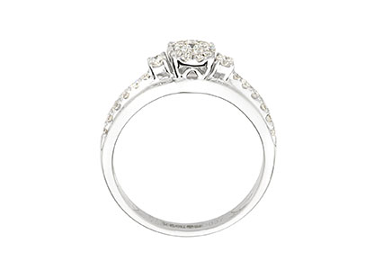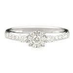 Elegant and sophisticated, with a modern and distinctive style, this beautiful 18ct white gold diamond cluster ring has an elegance that makes it exceptional. The beautiful round brilliant cut central round cluster, has been perfectly framed by a round brilliant cut diamond set on each side, with a further six round brilliant cut diamonds on each shoulder. These diamonds have been specially chosen for their exceptional sparkle and fire and set in a unique style that captures light from every angle.