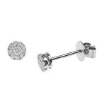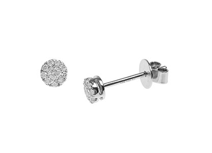 The round shaped, white gold clusters, have a single centre diamond in an invisible setting, surrounded by a further nine round brilliant cut claw set diamonds, giving the illusion of one large 0.35ct diamond in each earring, creating a dazzling display of sparkling fire.