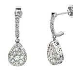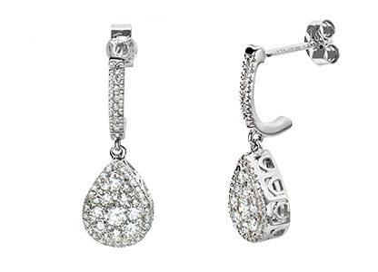 Simply stunning, these beautiful 18ct white gold diamond drop earrings are elegant and intricately crafted. The pear shaped white gold settings are encrusted with sparkling round white brilliant cut diamonds, which will create a dazzling display of sparkling fire as you move.