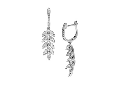 These stunning earrings are crafted in 18ct white gold, set into five connected sections to each earring to allow a beautiful flowing movement, accentuating the sparkle of the gorgeous brilliant cut white diamonds, a truly exceptional pair of earrings.