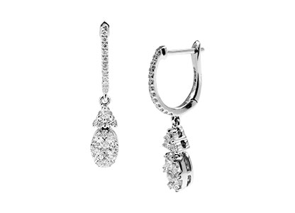 These stunning earrings are crafted in 18ct white gold, set into three connected sections to each earring to allow a beautiful flowing movement, accentuating the the sparkle of the gorgeous brilliant cut white diamonds. A truly exceptional pair of earrings.