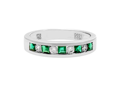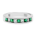 An elegant contemporary design, with a sophisticated style, this beautiful desirable ring is crafted in 18ct white gold set with five glistening square emeralds, divided and evenly spaced with four contrasting sparkling white round diamonds. This breath-taking ring will make you feel a million dollars every time you wear it.