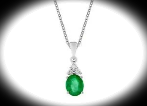 A stunning oval emerald and diamond necklace in 18ct white gold, available on its own or with a choice of 16, 18, or 20-inch chains.