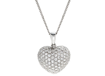 Make a bold statement with this outstanding sparkling pave set diamond heart pendant, set with a total of one hundred and twenty-one round brilliant cut diamonds.