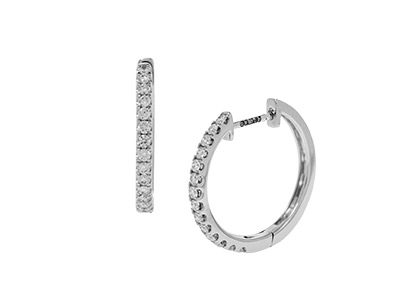 These timelessly graceful hoop earrings, are crafted in 18ct white gold. Set with twenty-eight round brilliant cut white diamonds, chosen by our expert diamond buyer for their exceptional sparkle and fire, reflecting the light beautifully in every direction. This creates a dramatic effect that is both romantic and eye-catching, which is sure to command attention wherever you go… for all the right reasons of course!