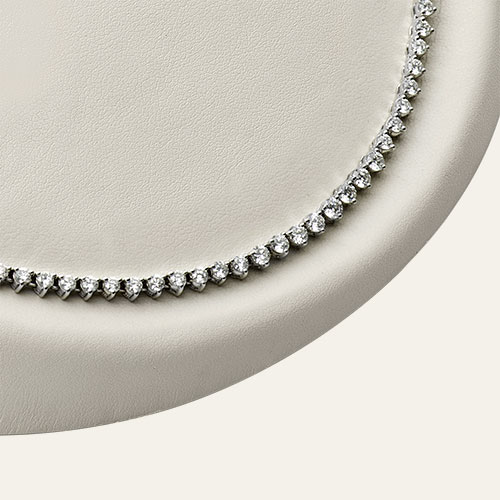 This luxurious and sophisticated 18ct white gold diamond collarette necklace, is crafted to the highest standard, with each diamond individually claw set. Made up of one hundred and thirty round brilliant cut white diamond sections, with a concealed clasp, allowing a continuous uninterrupted smooth flowing movement.