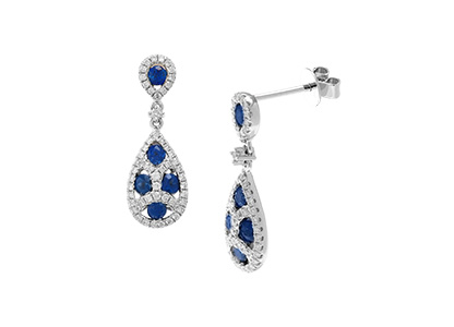 Absolutely stunning, these beautiful 18ct white gold diamond and sapphire earrings are intricately crafted. The breath-taking combination of diamonds and beautiful blue sapphires, complement each other to the point of perfection. Sure to be the crowning glory of any ensemble.