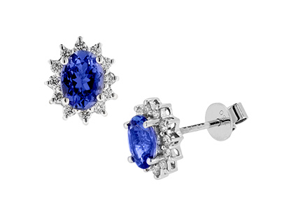 These 18ct white gold diamond and tanzanite earrings are simply stunning. Captivating timeless sparkle and a majestic style that will make you look and feel gorgeous, showcasing central oval tanzanite stone’s that harmonize with impressive blue tones, surrounded by round white sparkling diamonds, for ultimate luxury that will make you stand out from the crowd and make you feel like royalty.