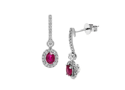 Absolutely stunning, these gorgeous 18ct white gold diamond and ruby earrings are intricately crafted. The breath-taking combination of diamonds and beautiful blood red rubies, complement each other to the point of perfection. Sure to be the crowning glory of any ensemble.