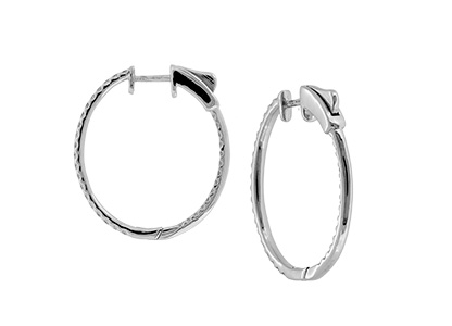 Set with luxurious sparkling white diamonds to the front and inside back, catching and reflecting light in every angle. These gorgeous hoop earrings will add instant glamour to all of your evening looks, that will ensure you steel the spotlight.