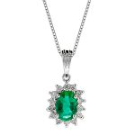 A delightful classic oval green emerald & diamond cluster pendant elegant and intricately crafted to the highest standard, creating a smart and sophisticated style that she will always cherish.