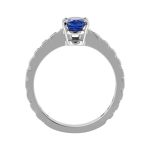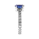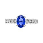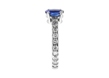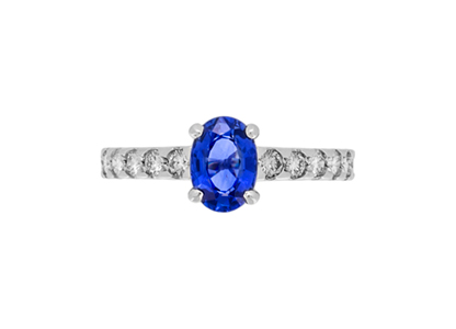 Simply stunning, the compelling intense blue of this oval sapphire really is exceptional and looks fantastic against the contrasting white sparkling diamond shoulders.