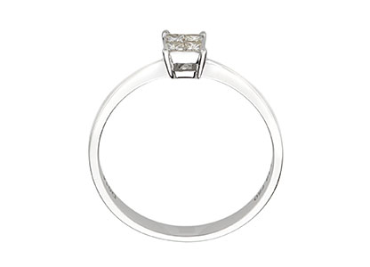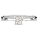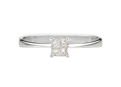 Elegant and sophisticated, a classic feminine style with a modern twist. There are four princess cut diamonds which have been invisibly set under a microscope with no visible claws in the centre, but with four claws on the outer corners, which gives an illusion of one single 0.25ct diamond.