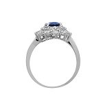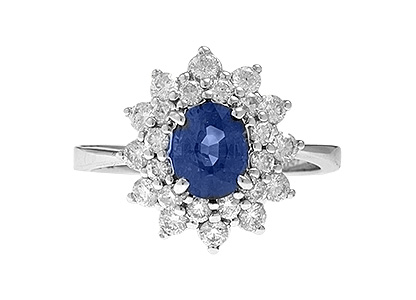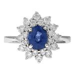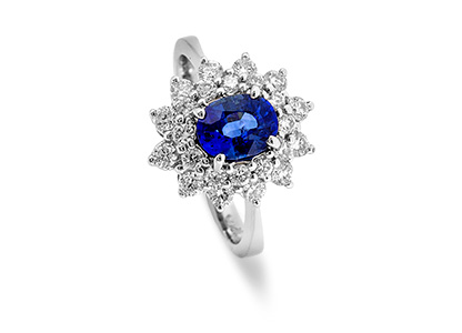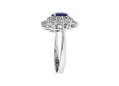 This gorgeous and sophisticated 18ct white gold ring will take her breath away, set with a beautiful oval cornflower blue sapphire, framed by two rows of brilliant cut round white diamonds. This elegant design creates a dramatic effect that is both romantic and eye-catching and would make a stunning engagement ring or majestic dress ring.
