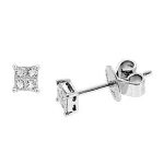 Crafted in 18ct white gold are four gorgeous princess cut sparkling white diamonds in a mosaic setting to each earring, giving more facets than a single stone thus creating a more dazzling display of sparkling fire than you would normally expect from these petite earrings.