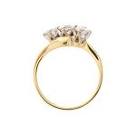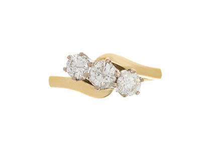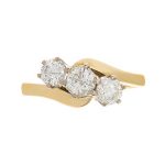 A beautiful classic 18ct yellow gold three stone round brilliant cut diamond ring.