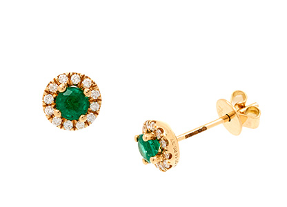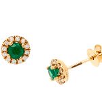 City of London Jewellers Present 18ct yellow Gold Emerald and Diamond Round Cluster flower Stud Earrings ESA0431