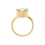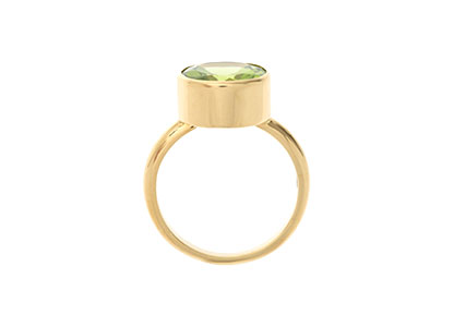 This alluring olivine green Peridot, is set in a gorgeous, highly polished 18ct yellow gold rub over setting. The peridot has not been treated in any way and is a totally natural stone, which makes this ring one of a kind. A ring that will make an unusual colourful addition to your collection.