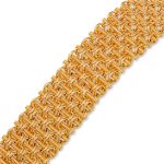 This luxurious 18ct yellow gold interwoven patterned bracelet is just over one inch wide.