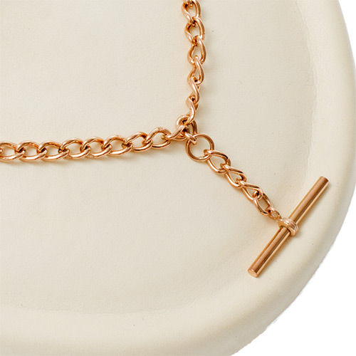 A classic solid 9ct gold Albert pocket watch curb chain with a solid T bar.