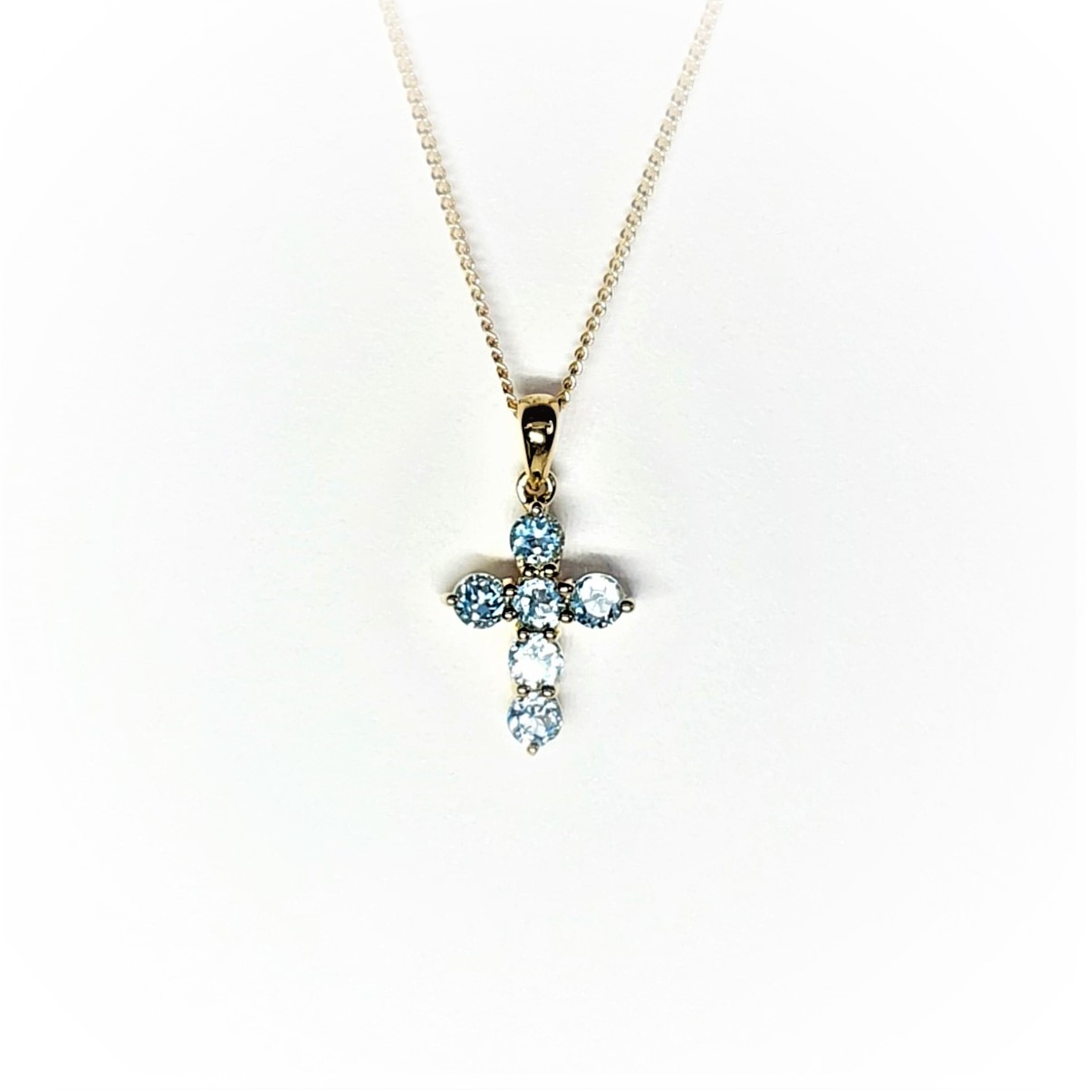 9ct Gold Blue-Topaz Cross-Necklace PC00297