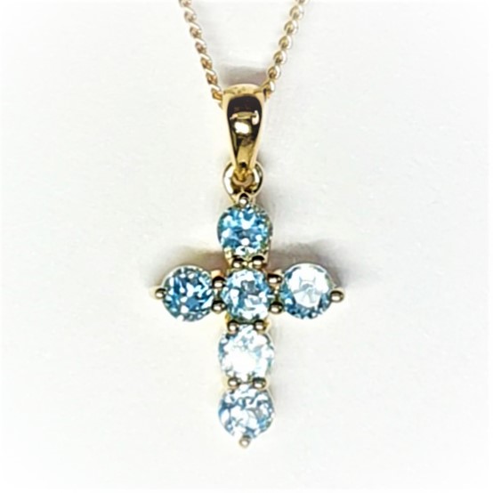 9ct Gold Blue-Topaz Cross-Necklace PC00297.