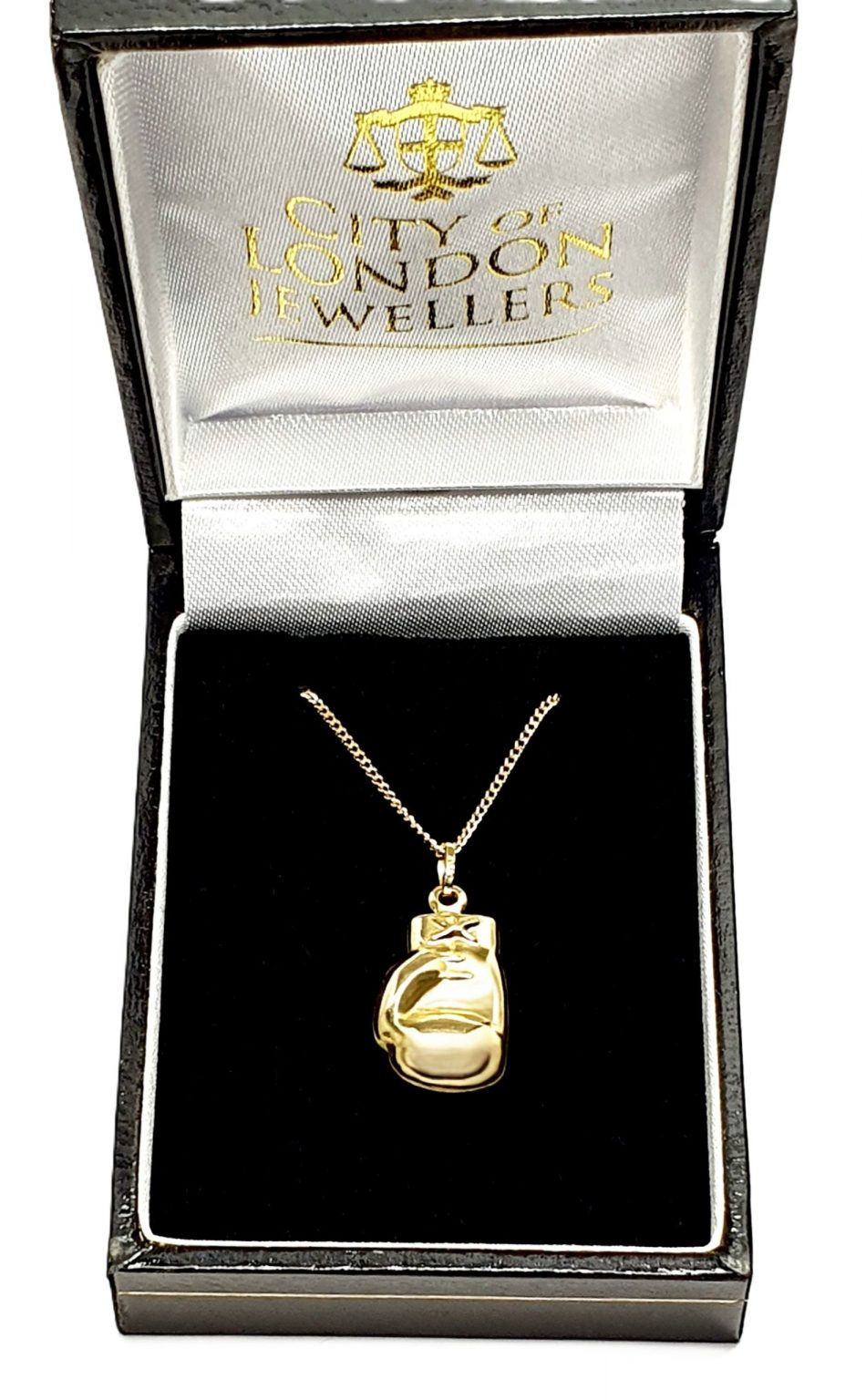 Furthermore, when you purchase the 9ct Gold Boxing Glove Necklace with a chain, we elegantly present it in a leatherette gift box. When bought alone, it comes in a charming plastic and cotton wool box.