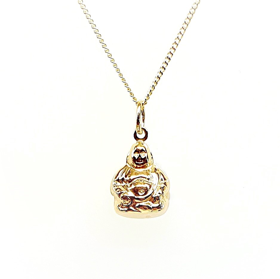 Although many confuse Ho Tai with the Historical Buddha, he is, in fact, a revered Chinese monk. Hence, known for his joyful demeanour and generosity, Ho Tai brings happiness and prosperity to those who honour him. Consequently, the 9ct Gold Buddha Necklace captures these qualities and is a meaningful piece of jewellery.