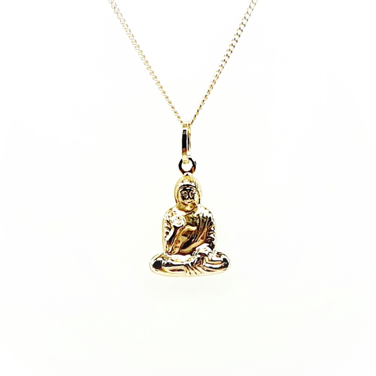 This 9ct Gold Buddha Pendant is perfect for any occasion. You can choose to buy it on its own or paired with one of our traditional 9ct gold sparkling curb link chains. Specifically, our chains are available in three lengths: 16 inches (40.64cm), 18 inches (45.72cm), and 20 inches (50.8cm). Consequently, you can select the length that best suits your style.