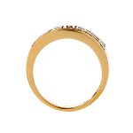 This unusual Greek key band ring measures 10mm to the front, tapering to 5mm at the back.