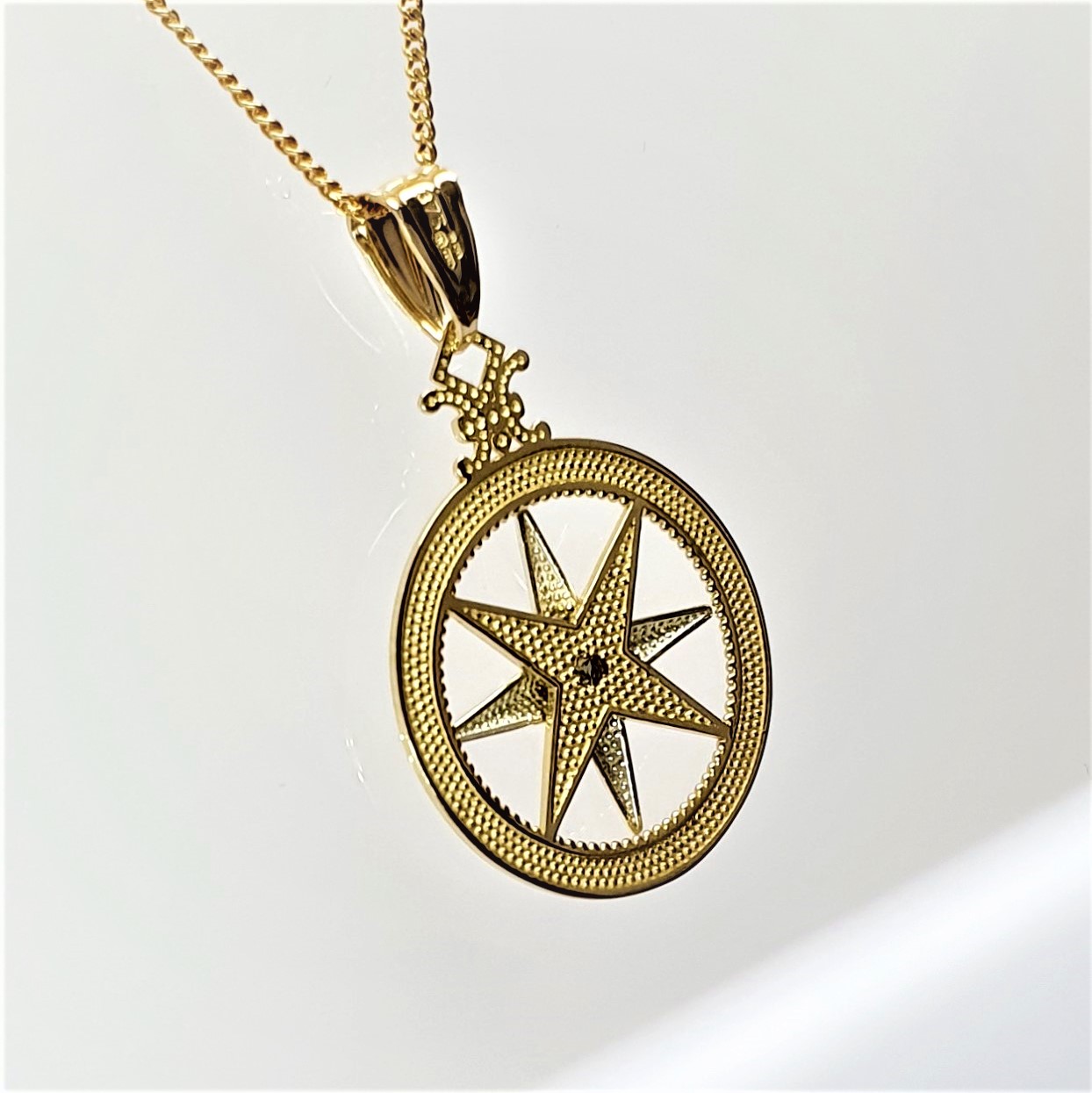 City of London Jewellers Present the Houghton Le Spring 9ct Gold Compass Pendant.