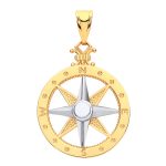 This Stunning North East South West compass pendant has an appealing nautical look,crafted in 9ct yellow gold with one star has a white rhodium finish to make it stand out.