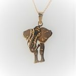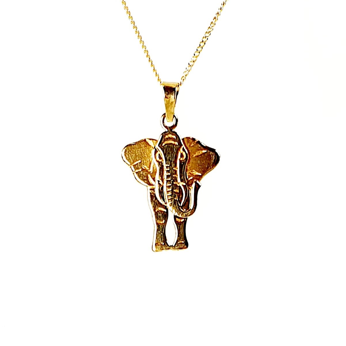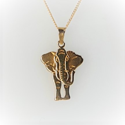 This lovely African elephant has been refurbished and polished like new. It can be purchased with or without the chain. The trunk and head move from side to side on a pivoted rivet which can be seen from the back picture.