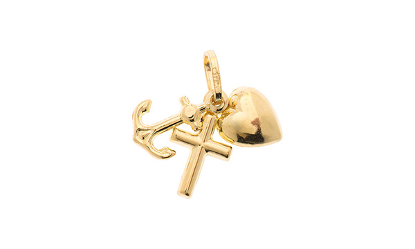 The City of London jewellers present this meaningful 9ct gold puffed pendant symbol of Faith Hope And Charity.