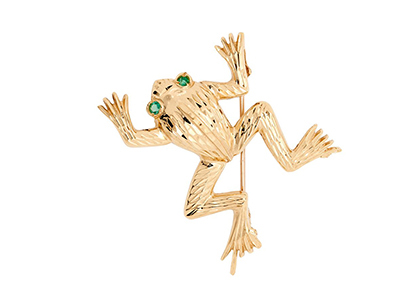 9ct Gold Frog Brooch with Emerald Eyes BRQ00016.