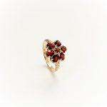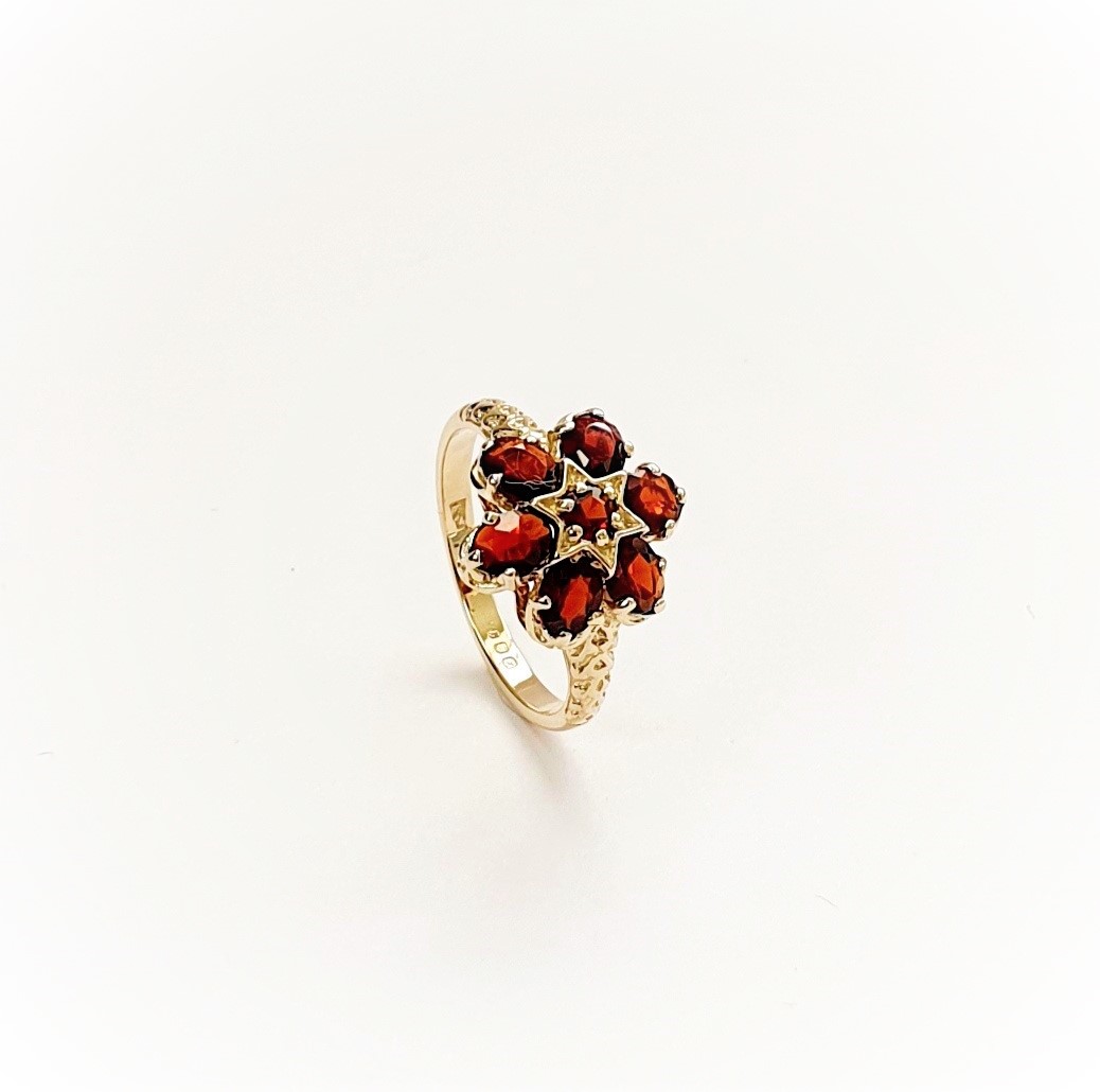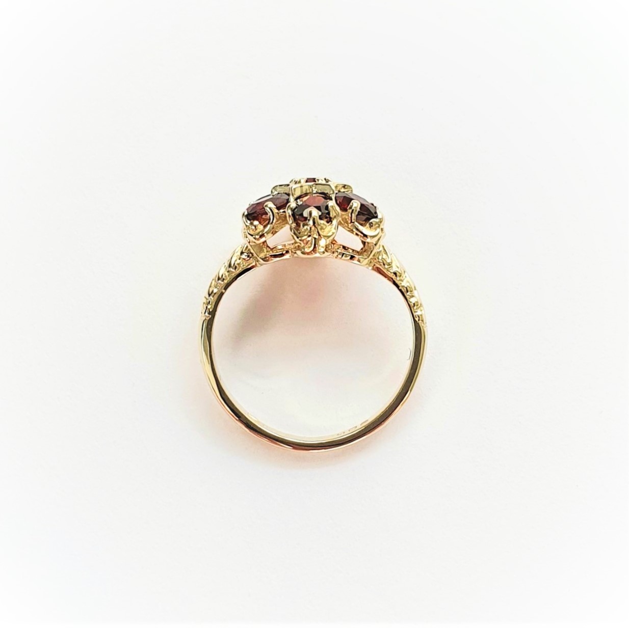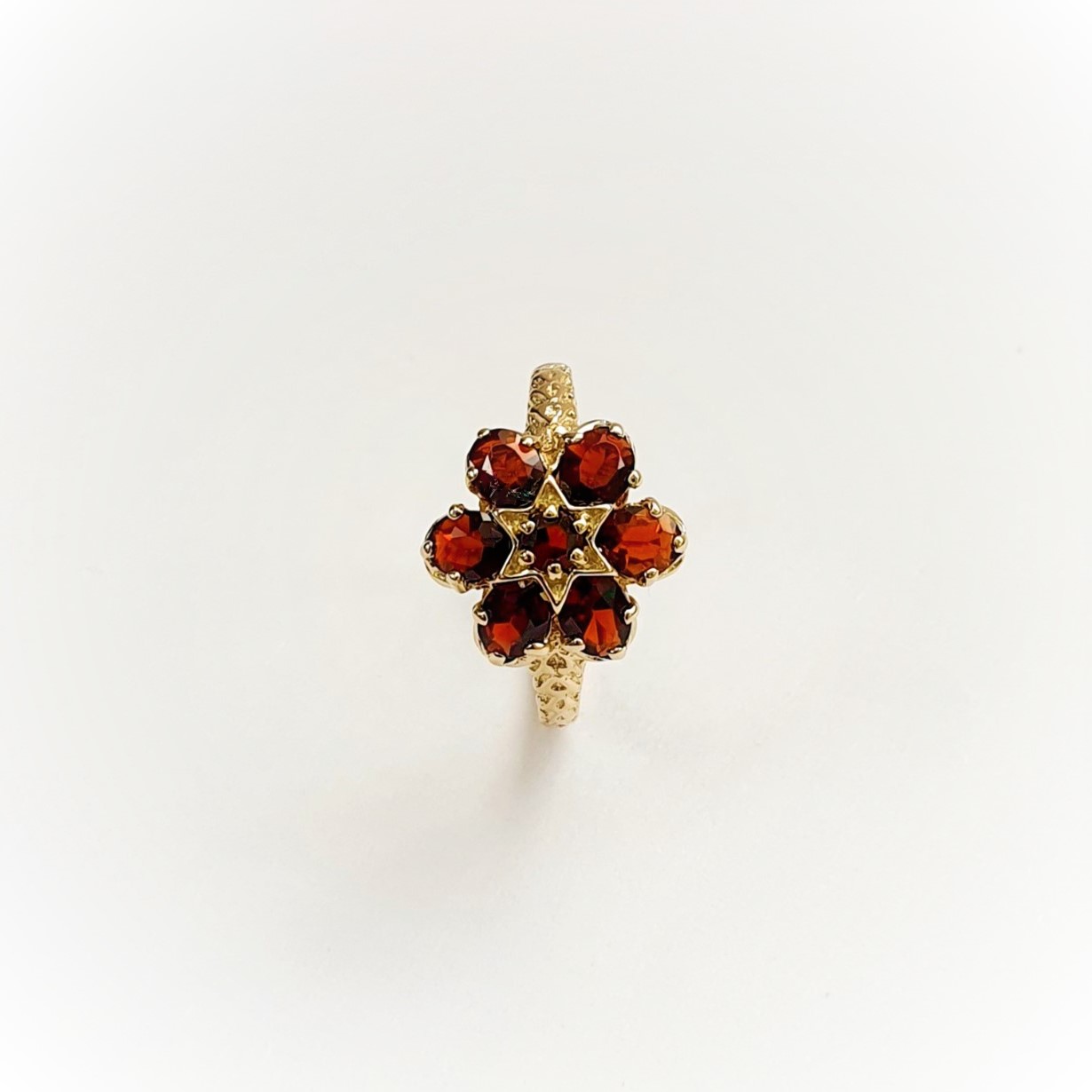 A charming, carved vintage-style, 9ct gold Garnet Flower Cluster Ring.
